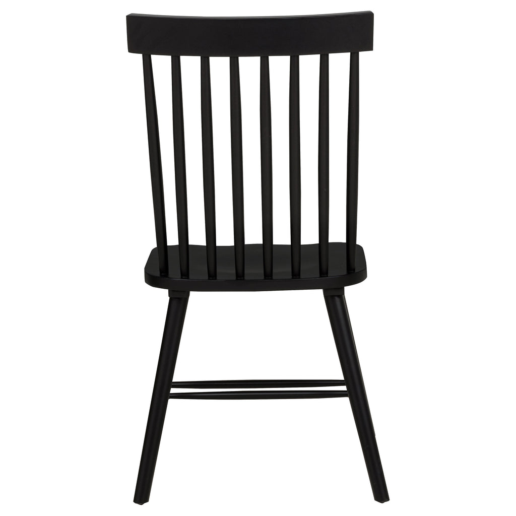 Graceful and inviting, this dining set blends timeless charm with gentle mid-century influence. A round table with tapered legs anchors the room, while Windsor-style side chairs feature high spindle backs and curved seats for enduring comfort. Each piece is crafted from solid rubberwood with ash veneer over engineered wood, highlighting soft wood grain throughout. Perfect for cozy breakfast nooks, casual kitchens, or intimate dining spaces. Key Features: • Dining set with round table and chairs in light ash finish blends timeless form and function • Smooth tabletop and tapered legs lend airy elegance with a subtle retro-inspired feel • Windsor-style side chairs feature tall spindle backs and gently contoured wooden seats • Angled legs and dual stretchers on chairs enhance durability and balanced proportions • Crafted from solid rubberwood, ash veneer, and engineered wood for long-lasting use • Light ash wood grain offers a natural finish that complements various dining interiors