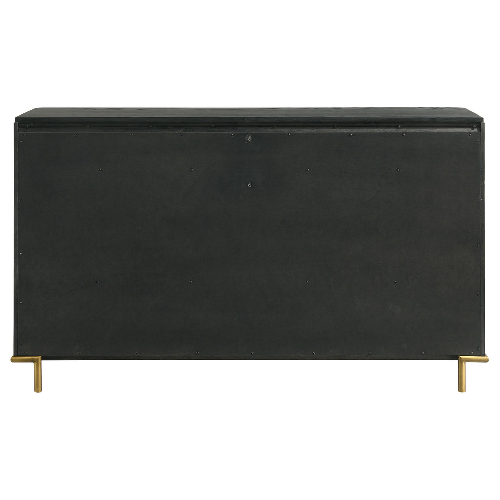 Sophisticated and timeless, this eight-drawer dresser blends mid-century modern design with subtle coastal charm. Its sand wash finish reveals a wire-brushed texture that enhances the natural wood grain. Round aged brass knobs and matching tubular metal legs lend a refined touch of glamour, while felt-lined top drawers protect delicate items. With generous storage and an elegant silhouette, this dresser offers both beauty and practicality for modern and transitional bedrooms._x005F_x000D_ Key Features: • Eight-drawer dresser with smooth sand wash wire-brushed finish • Aged brass knobs and legs add a refined, mid-century elegance • Felt-lined top drawers protect jewelry and delicate accessories • Spacious drawers provide generous bedroom storage solutions • Crafted from rubberwood, engineered wood, and ash veneer • Rounded corners and tubular metal base highlight modern style