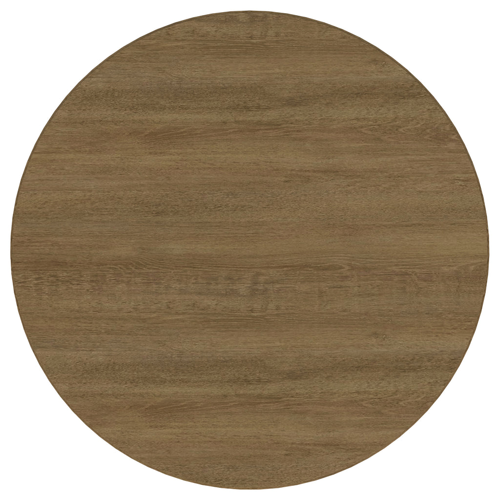 Graceful curves and natural textures define this round dining table, where rustic warmth meets modern refinement. A sand wash wood finish softens the white ash veneer top, while the sculpted base is anchored by cylindrical legs and a gently arched aged brass stretcher. Crafted from solid rubberwood and engineered wood, this table invites relaxed gatherings and everyday elegance with its timeless, welcoming design. Key Features: • Round dining table features a smooth white ash veneer top in a sand wash wood finish • Cylindrical legs create a clean, minimalist base with a sculptural presence • Aged brass-finished metal stretcher bar adds contrast and structural integrity • Crafted from solid rubberwood, engineered wood, and white ash veneer for durability • Circular format promotes easy conversation and a more intimate dining setting • Finish showcases wood grain patterns for a refined rustic-modern aesthetic