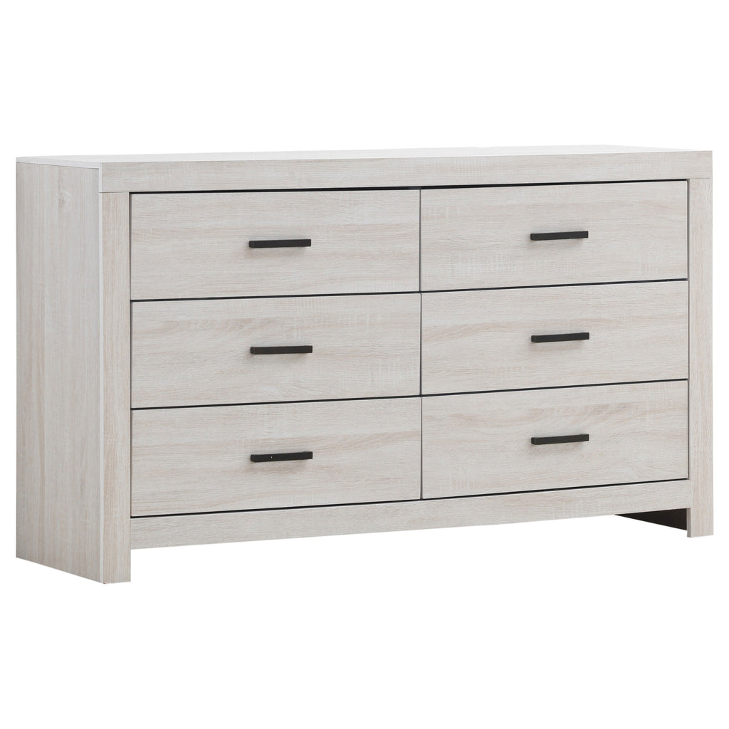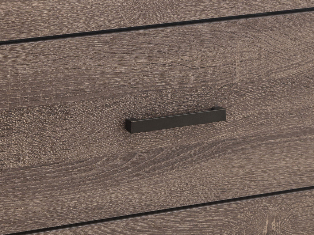 The Brantford bedroom set brings contemporary style and functionality to any space. Anchored by a sleek panel bed with a slatted headboard, this set blends clean lines with a refined aesthetic. Crafted from engineered wood with a durable laminate veneer, each piece ensures long-lasting durability. Matte dark bronze hardware provides a stylish contrast, enhancing the modern appeal. Designed for both style and practicality, this bedroom set creates a cohesive and sophisticated sleeping space. Key Features: • Bedroom set centered around a sleek panel bed with a slatted headboard • Barrel oak finish enhances the warm, natural wood grain-inspired look • Sturdy engineered wood construction ensures long-lasting durability • Matte dark bronze hardware adds a stylish, modern contrast • Clean lines and minimalist details complement contemporary interiors • Durable laminate veneer resists scratches, stains, and everyday wear