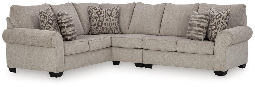 Whether your vision is traditional or cozy farmhouse, this sectional has the corner on style. Merging ultimate comfort with striking good looks, this chic seating includes coordinating accent pillows for that much more feel-good allure.