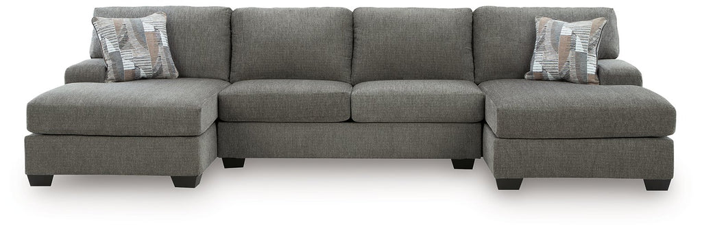 Why choose between classic comfort and modern design? This sectional with double chaise welcomes day-to-day relaxation in style. Its dimensional, menswear-inspired upholstery brings a designer touch to the easygoing silhouette. Gear up for game night or settle in to stream your favorite show—this sectional is an ideal supporting character for your living room hangs.