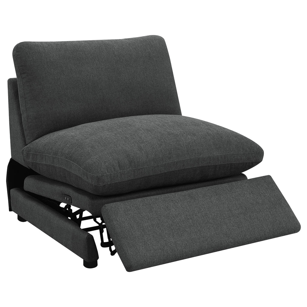 Transform your living space with the versatile modular sectional, designed to offer a perfect blend of comfort, style, and customization. This sectional features three power reclining pieces and two non-reclining pieces, allowing you to create your ideal seating environment. With the option to add additional power or non-power armless chairs, you can customize the layout to suit your room and preferences. Enjoy the plush comfort of premium down-like filled cushions and a sleek, modern design that enhances any decor. Experience the ultimate in relaxation with the power reclining pieces, featuring a 4-inch wall-hugging design for full recline without needing excessive space. Key Features: • Versatile 5-piece modular sectional with three power reclining pieces and two non-reclining pieces • Option to add additional power or non-power armless chairs for customizable layout • Premium down-like filled cushions provide luxurious comfort and support • Sleek, modern design enhances any decor • Power recliners feature a 4-inch wall-hugging design for full recline without needing excessive space