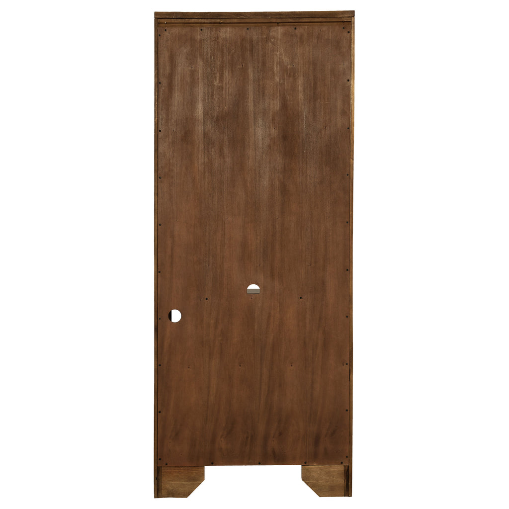 A traditional style bookcase is an elegant addition to offices and home libraries. This piece features five roomy shelves with plenty of space to arrange your favorite novels. Elegant detailing includes a stacked design on the top of the frame with a curved top. This piece is beautifully finished in burnished oak. It's supported on bracket style legs to bring stability. Key Features: • Bookcase with five tiers of open shelving finished in warm burnished oak wood tone • Top crown molding and arched detail elevate the classic presence of this tall shelf unit • Three of the five shelves are adjustable to support books, decor, or display pieces • Wire management cutouts in the back help organize and conceal media or lighting cords • Bracket base feet and stacked frame edges bring out the vintage-inspired details • Made of rubberwood, engineered wood, particle board, and white oak veneer