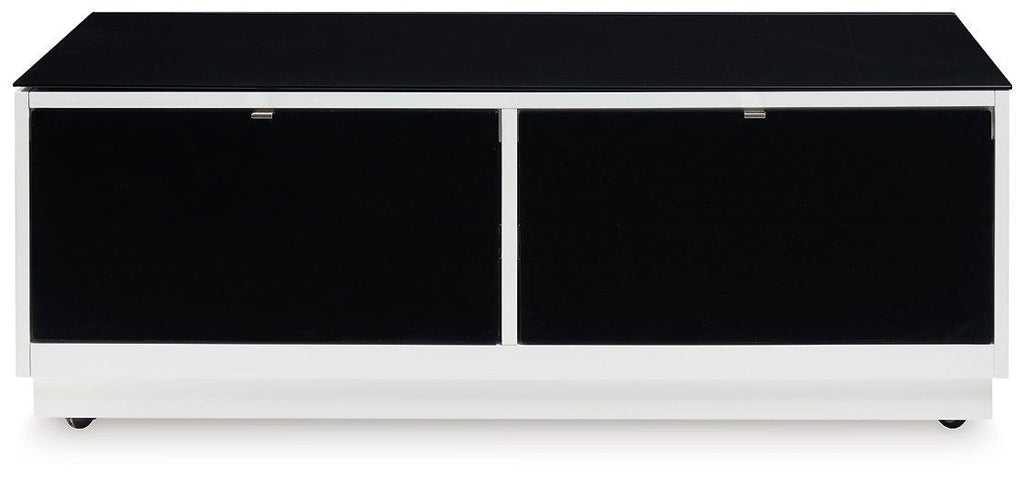 - Exposed feet with faux wood finish