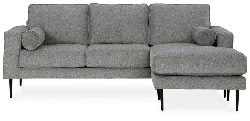 Simple comfort meets modern function in this sofa chaise. An apt addition to apartments and other small spaces, the slim-profiled piece welcomes you with its cozy character. A subtle chevron pattern on the cushions refresh the classic neutral hue, elevating the look while still suiting a variety of styles. Black accent legs add a dash of contemporary flair.