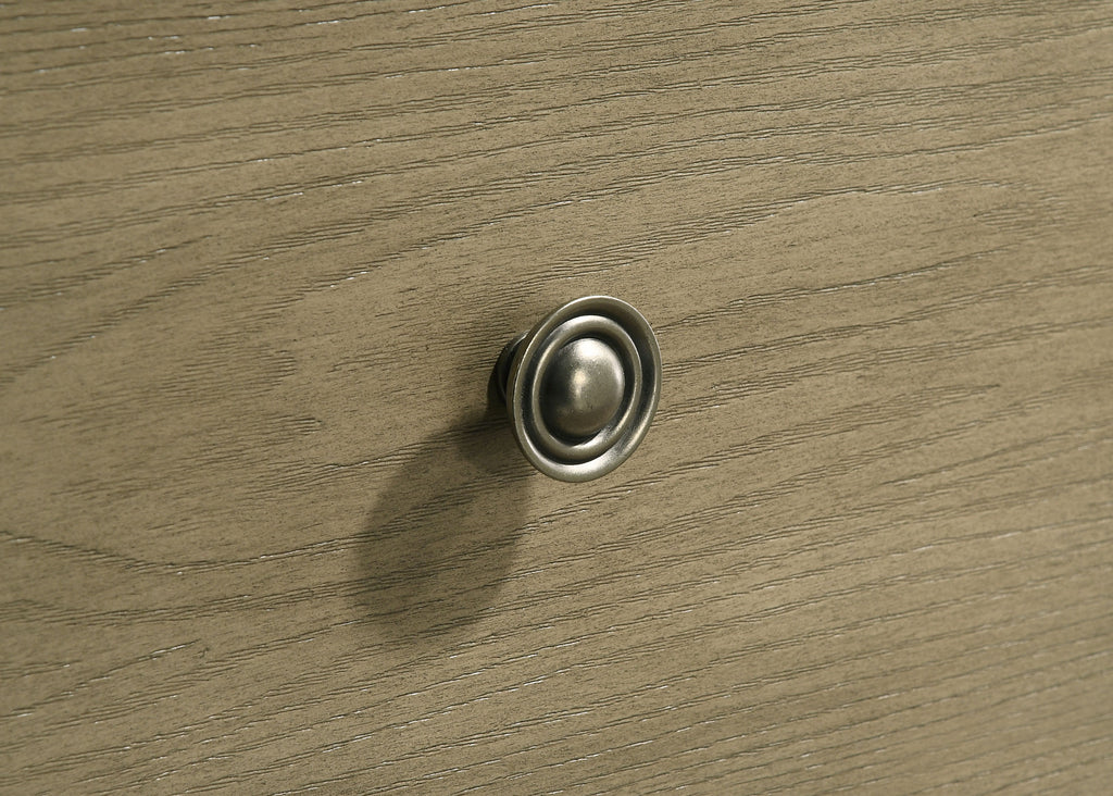 Elevate your space with this bedroom set blending craftsman character and modern utility. A vineyard oak finish enhances the oak grain texture across rubberwood and engineered wood veneer. Antique nickel metal knob and pull handles lend a refined touch to the clean, framed silhouettes. Case pieces glide with ease on heavy-duty metal ball bearing extension slides, while the platform bed features a framed headboard and two footboard drawers. Medium density fiberboard (Mdf) platform panels offer durable, foundation-free mattress support. Key Features: • Vineyard oak finish with embossed oak grain veneer creates natural warmth and depth • Platform storage bed features two drawers and medium density fiberboard (Mdf) panels for firm support without a foundation • Case pieces constructed from rubberwood and engineered wood veneer • Heavy-duty metal ball bearing drawer extension slides ensure smooth and lasting performance • Antique nickel metal knob and pull handles add contrast and a refined traditional touch • Framed silhouettes offer a clean, versatile foundation for any bedroom