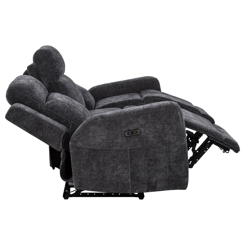 Wrap yourself in the comfort of this chenille power reclining sofa set, where modern design meets everyday luxury. Smooth push-button recliners offer effortless motion, while plush cushioning and padded headrests enhance relaxation. The loveseat includes a center console with lift-top storage and removable stainless steel cup holders. Soft chenille upholstery and a sturdy metal frame complete this inviting ensemble. Key Features: • Power reclining seats operate with smooth push-button control for personalized comfort • Ivory chenille upholstery features a soft texture with a refined woven appearance • Plush cushioning and padded headrests support extended periods of relaxation • Loveseat includes a center console with lift-top storage for added functionality • Two removable stainless steel cup holders offer clean and convenient drink access • Durable metal framing provides lasting strength and daily structural support