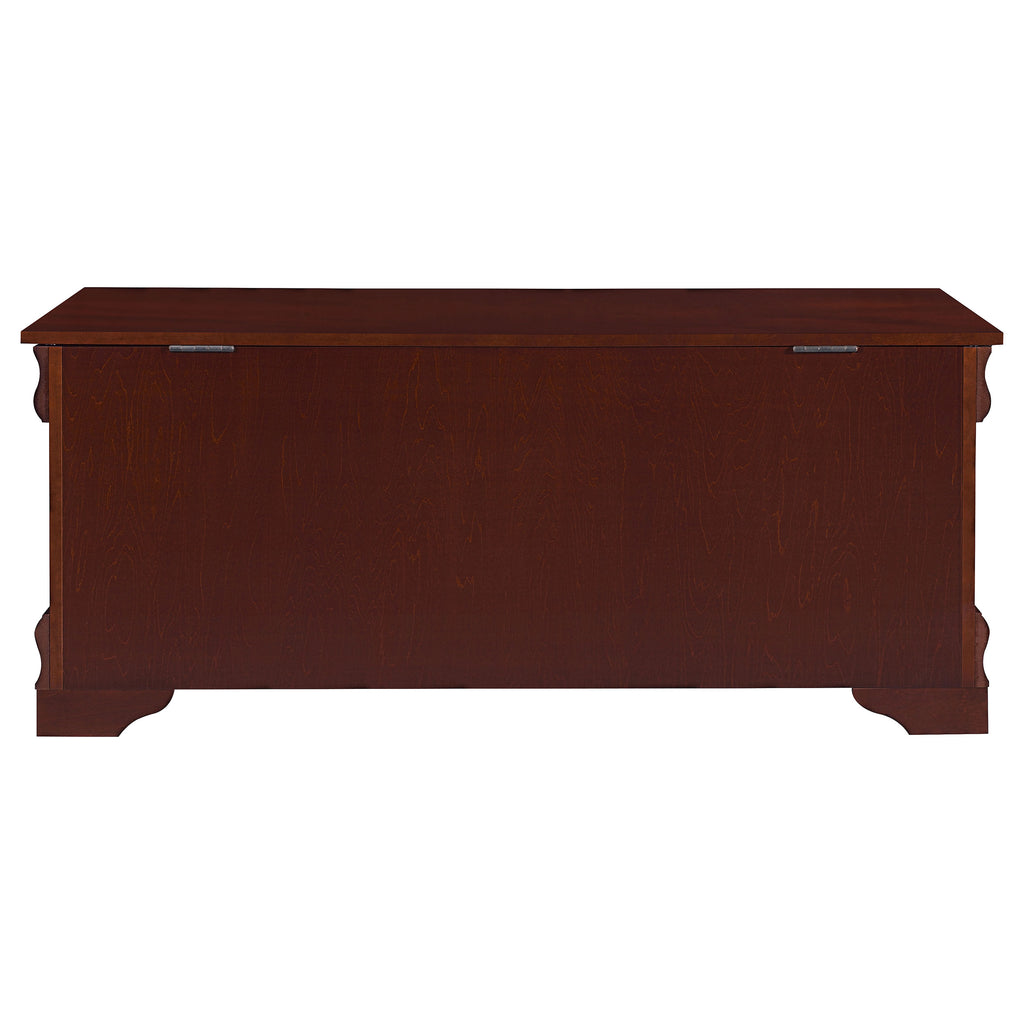 This cedar chest brings timeless elegance and storage in one, featuring a warm brown finish and traditional base molding. The flip-open top is supported by a child safety hinge for added security. Built from rubberwood, engineered wood, and basswood veneer, it offers durability and a refined profile. Inside, the fully cedar-lined interior naturally protects contents by repelling pests, absorbing moisture, and preserving freshness—ideal for linens, keepsakes, or seasonal items. Key Features: • Cedar chest with classic rectangular shape and traditional base molding for elegant appeal • Warm brown finish provides a rich, inviting tone for traditional or transitional settings • Flip-open top includes a child safety hinge for smooth and secure lid operation • Fully cedar-lined interior helps guard against moths, odors, and excess moisture • Crafted from rubberwood, engineered wood, and basswood veneer for lasting strength • Ideal for organizing blankets, keepsakes, or seasonal storage in bedrooms or entry areas
