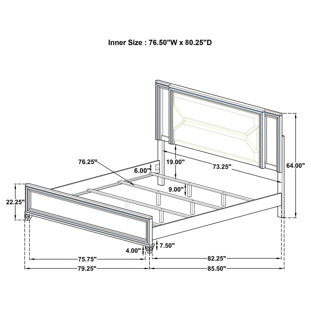 Indulge in the luxurious elegance of this modern Italian-designed bed, perfect for creating the opulent bedroom you deserve. The striking, clean lines and picture framed recessed panels with embossed herringbone graphic patterns exude sophistication. Accented with mirror framing and acrylic legs, the bed also features polished chrome metal hardware and touch LED lights in the 3-dimensional headboard, upholstered in off-white boucle fabric. Crafted from rubberwood, MDF, foam, and mirror, this bed offers both style and durability. Available in queen, eastern king, and California king sizes to suit your preferences. Key Features: • Queen bed with 3-dimensional headboard upholstered in off-white boucle fabric • Modern Italian design with clean lines and opulent aesthetics • Picture framed recessed panels with embossed herringbone graphic patterns • Mirror framing and acrylic legs with polished chrome metal hardware • Touch LED lights in the headboard provide added convenience and a modern touch to your bedroom