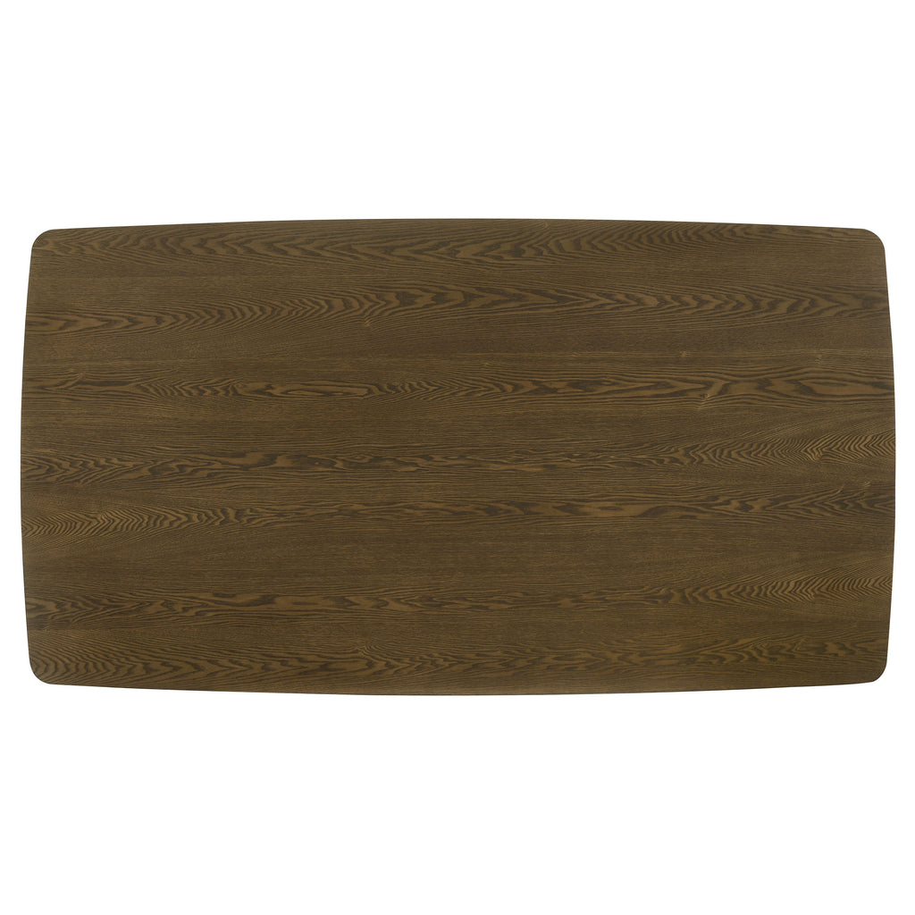This transitional-style round dining table combines timeless design with practical functionality. Featuring a rich brown finish, it showcases a beautifully crafted tabletop supported by angular legs for a contemporary touch. An open lower shelf adds convenient storage or display space, enhancing its versatility. Constructed from white oak veneer, rubberwood, and engineered wood, this table provides both durability and style, making it a perfect centerpiece for any dining space. Key Features: • Transitional-style round dining table with a rich brown finish for a warm, elegant look • Angular legs provide a modern touch while maintaining stability • Open lower shelf offers additional storage or display space for added functionality • Crafted from white oak veneer, rubberwood, and engineered wood for durability • Compact yet versatile design is ideal for small or medium-sized dining spaces • Combines timeless craftsmanship with contemporary practicality