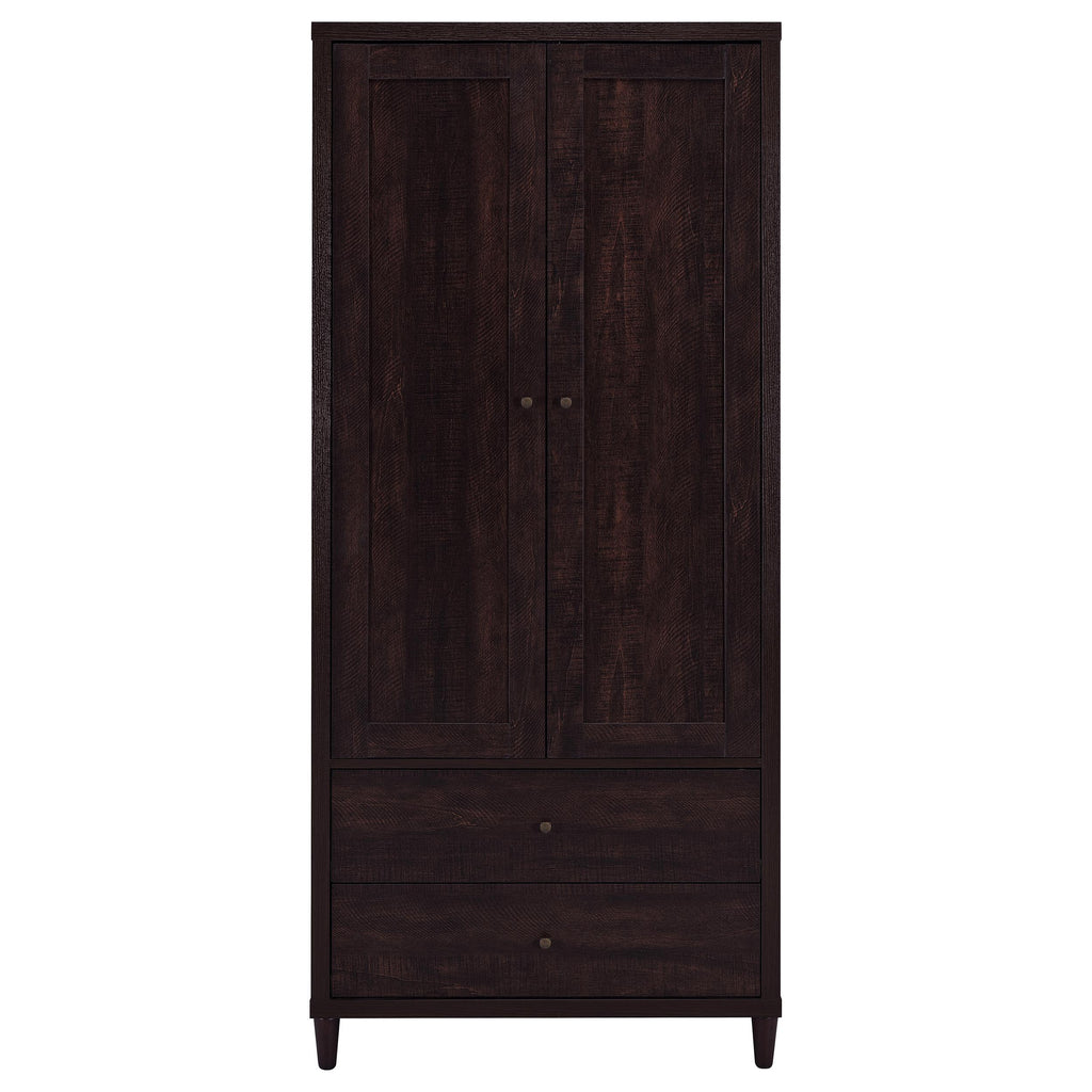 This impressive accent cabinet imparts an imposing presence to the home. At over six feet tall, it has the capacity to take on all storage needs. Two doors open up to ample space. Below are two deep drawers for additional storage of everything from sofa covers to extra plateware. The cabinet is finished in rustic tobacco for a warm, inviting ambiance. Key Features: • Tall silhouette with two doors and two drawers for ample storage • Rich rustic tobacco finish adds warmth and depth • Drawers glide smoothly and provide concealed storage options • Compact footprint suits hallways, dining rooms, or living areas • Built from rubberwood, engineered wood, and laminate veneer • Includes tip-over restraint for added safety